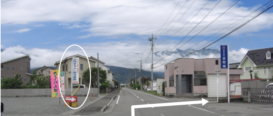 5個目の信号(上今諏訪)を左折し、すぐ1個目の信号(白根高校南)を左折