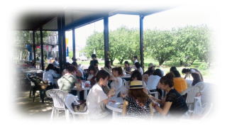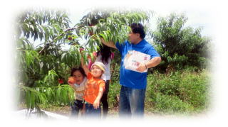 その後売店(または畑)のテーブルにて、こちらで事前に収穫して用意した桃を召し上がってください。